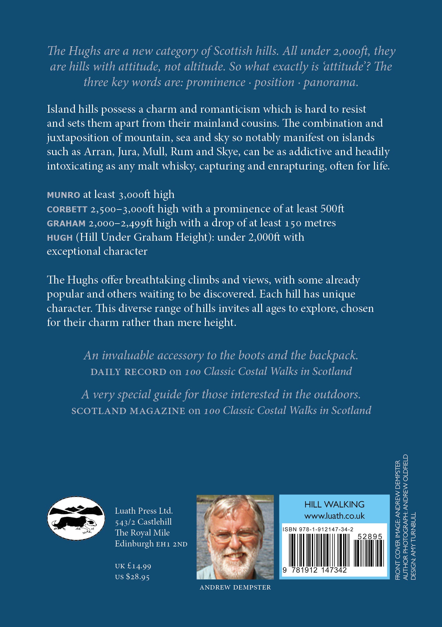 ANDREW DEMPSTER has almost 40 years’ experience of walking, scrambling and backpacking in the Scottish Highlands and Islands. He has climbed all the Munros twice and the Corbetts, and wrote the only guidebook to the Grahams (mountains 2,000–2,500 feet in height). He has also walked, trekked and climbed extensively in such varied locations as the Alps, the Pyrenees, the Himalaya, Africa, Iceland and Greenland. The Highlands of Scotland are his first love, however, and he lives in rural Perthshire with his wife, Heather and son, Ruaraidh.